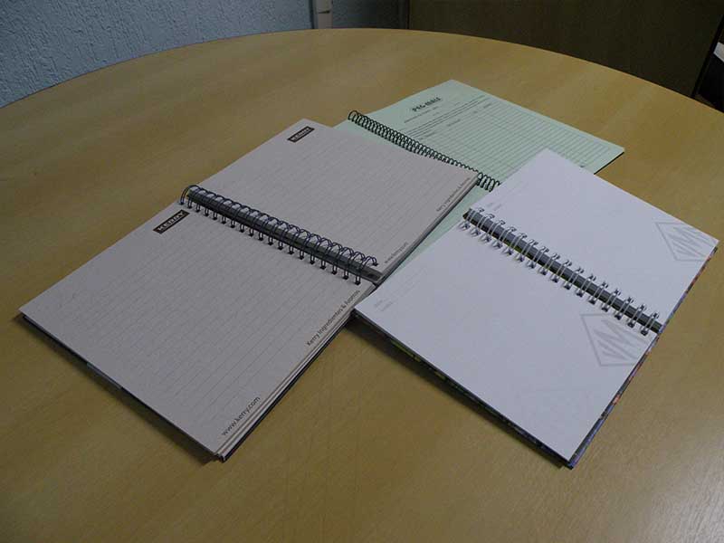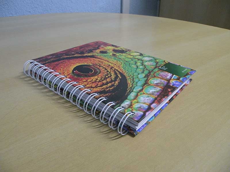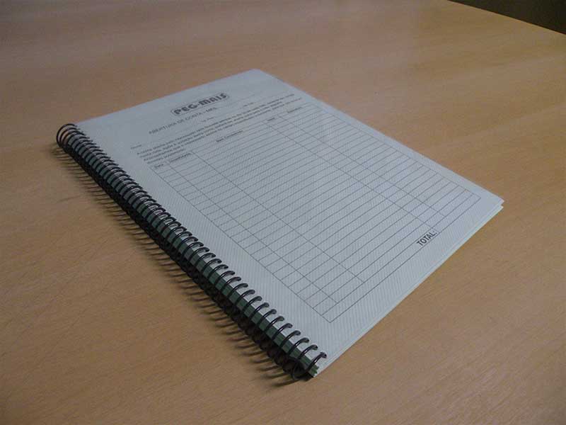 São folhas pautadas com o logotipo de sua empresa deixando ele personalizado. No seu interior além das folhas pautadas, você tem como opção colocar folhas (divisórias) com a história da sua empresa ou de algum produto. Os cadernos podem ser grampeados, wire-o ou espiral, do jeito que melhor lhe atender.